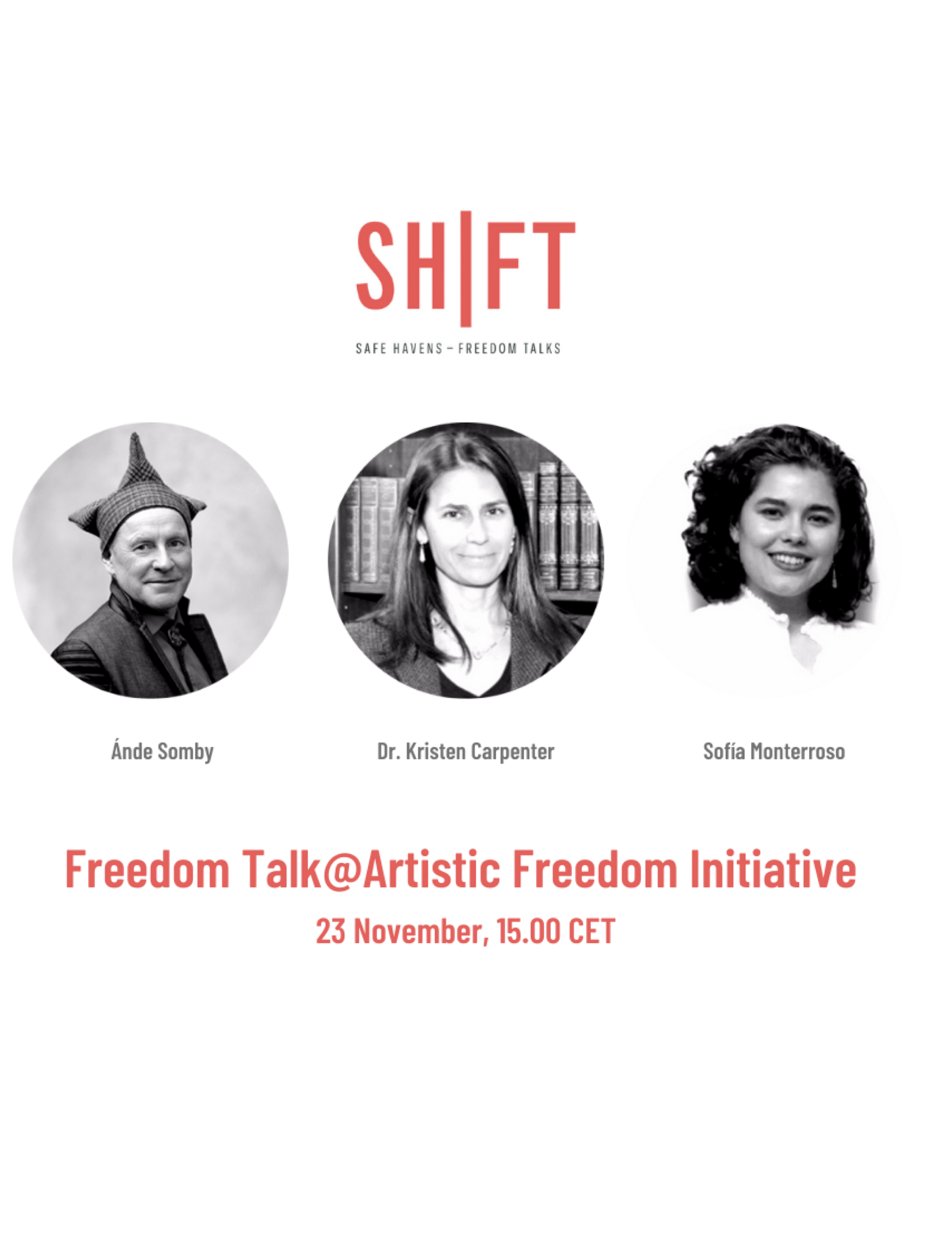 The Freedom Talks series focuses on issues related to threats to artistic freedom, free press and intangible heritage. Guests in the Freedom Talks series are highly knowledgeable and prolific actors in the global Arts Rights Justice sector. The Freedom Talks aim to share space and broaden the narrative of who can take center stage, by lending the brand to different organizations within the sector. The talks are sponsored by the Swedish Institute and can be viewed on the SH|FT Facebook page, as well as the platform HowlRound.