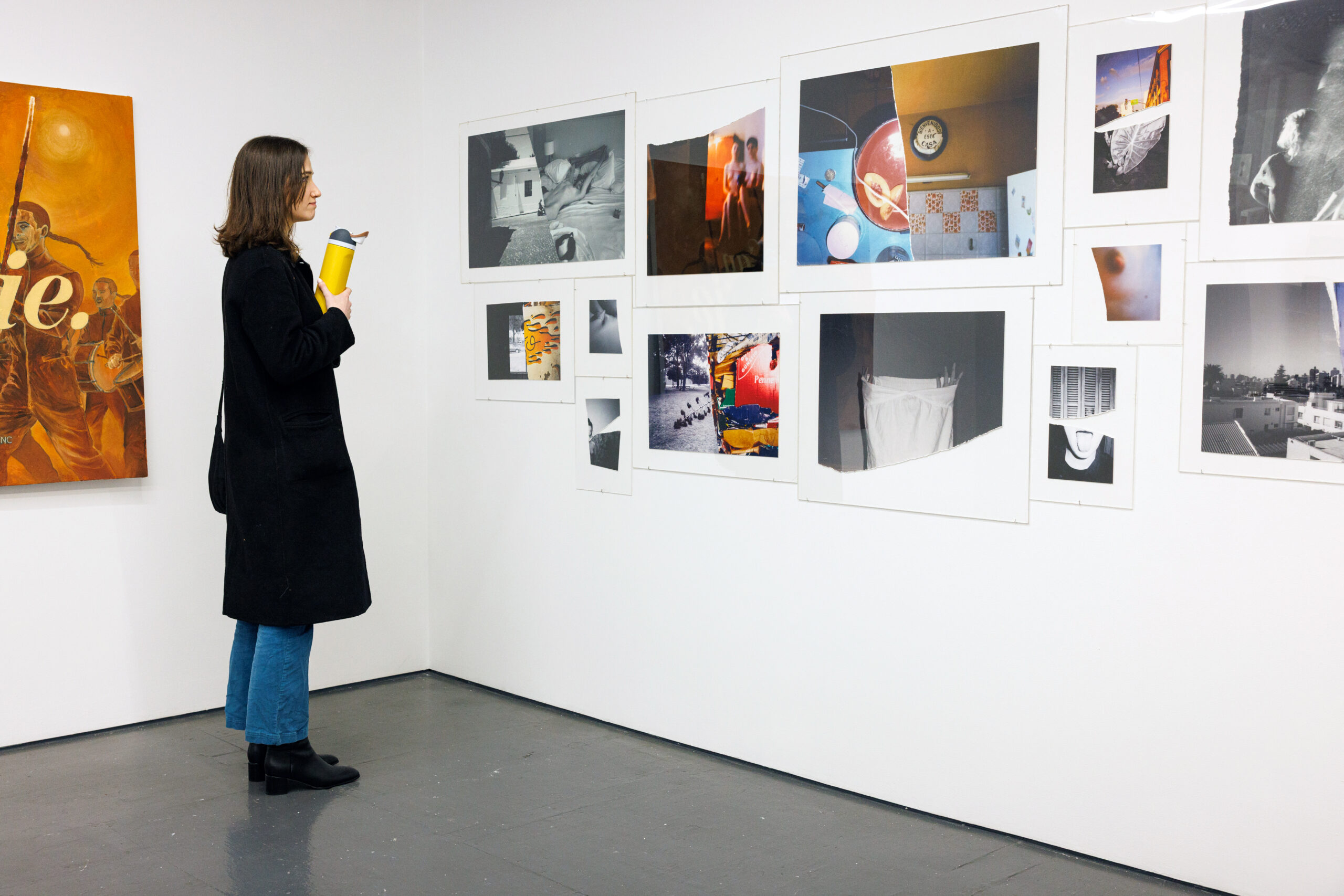 The three artists presented, Cansu Korkmaz, Nazanin Noroozi, and Bart Was Not Here, all approach their practice with the history and nuance of lived experiences expressed through painting, collage, textures, and personal imagery. There is a bipartite dialogue between intimacy and transition, pain and calm, as works engage with both world-building and destruction. The works presented for Encapsulate In Transcendence condense emotions and actions across all directions, serving as an impetus to strive and maintain momentum, regardless of the condition the mind and body find themselves in. These experiences stem from instability, longing, and in-between conditions dictated by migration and geopolitical circumstances.