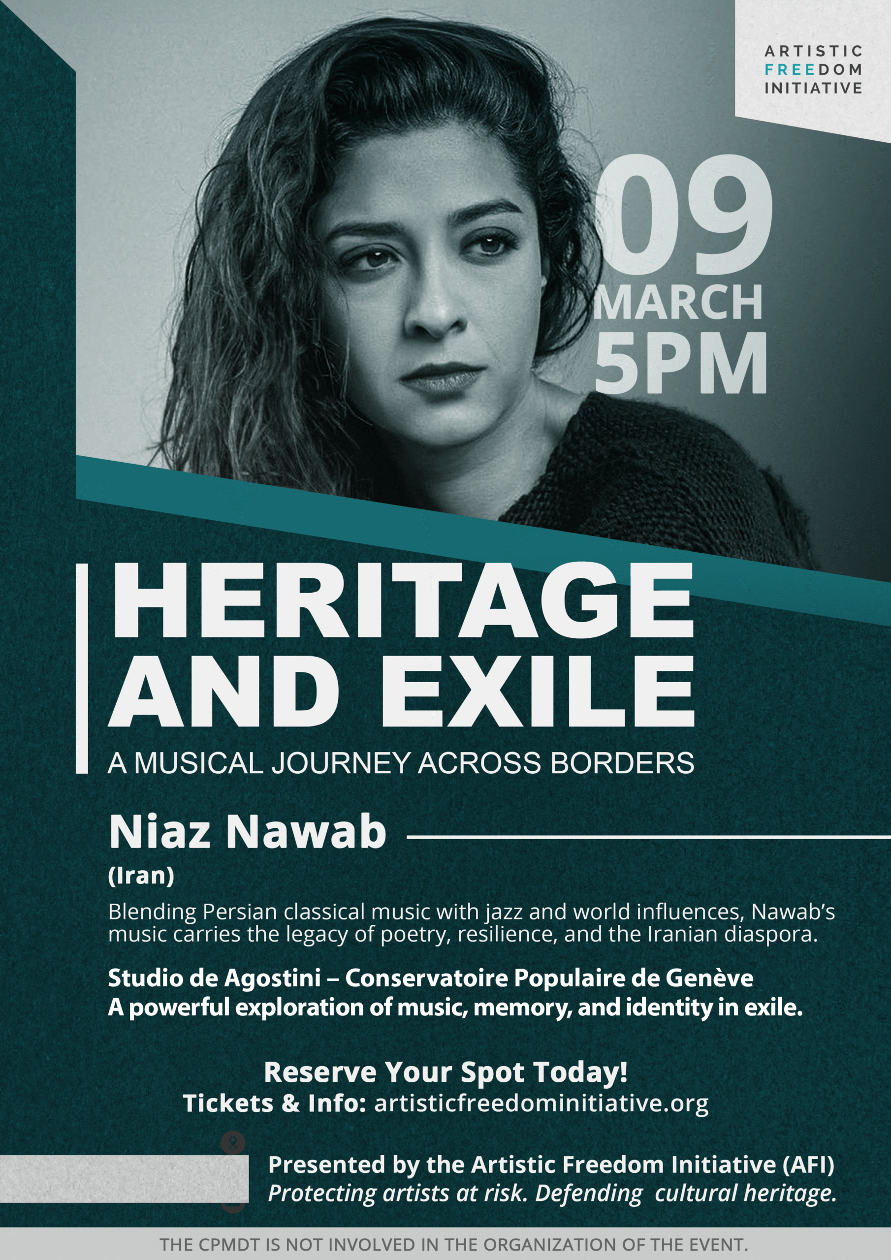 9 مارس | Studio de Agostini - Conservatoire Populaire de Genève - ساعت 5 بعد از ظهر، درها 4 بعد از ظهر.